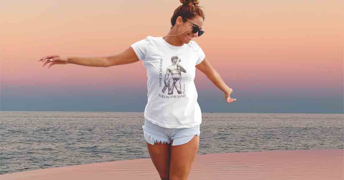 Wein in der Hand - Füße im Sand Retro-Design nicht nur für Katzenfans - nein, auch für Freundinnen des guten Weins! Wähle deinen Lieblingsstrand der Insel bei deiner Bestellung aus, und wir zaubern ihn dir ins Design! Salud!